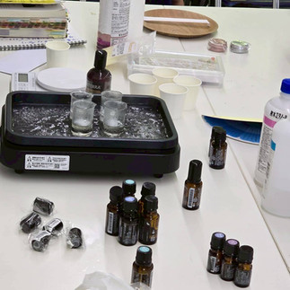 アロマバームつくりは、自分の好みの香りで作ることができ、皆さんそれぞれ、違ったかおりのオンリーワンのアロマバームをつくられていました。