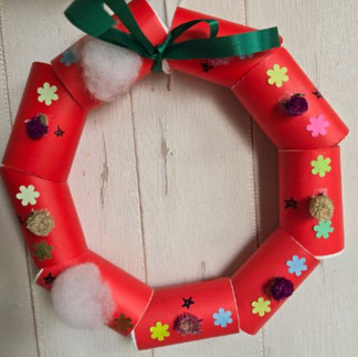 赤や緑の筒を生かしながら、それぞれのアイデアで🎄リース作り。
